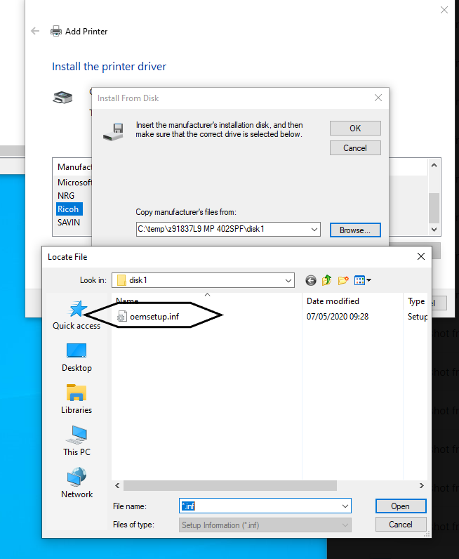 In dem sich dann öffnenden Dialog wählen Sie den Druckerhersteller (z.B. Ricoh) und dann das richtige Druckermodell.
