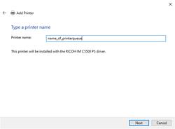 Geben Sie den gewünschten Namen des Druckers ein, wie Sie ihn bei sich in Ihrem Windows benennen wollen. Wir empfehlen den DESY-Druckernamen zu verwenden, um Verwechselungen vorzubeugen.