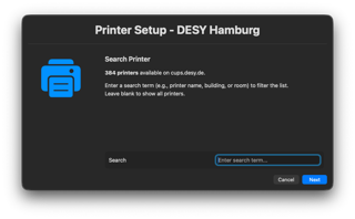 Mit Printer Setup – DESY richten Sie DESY-Netzwerkdrucker selbstständig ein. Das Tool zeigt alle verfügbaren Drucker live vom DESY-Druckserver und installiert den gewählten Drucker automatisch.