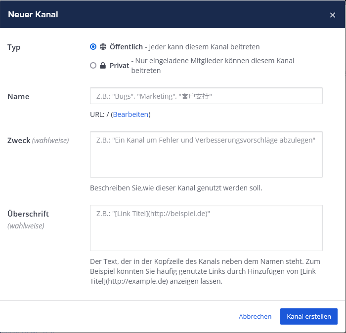- Name des Kanals (bitte erstellen Sie diesen vorher):