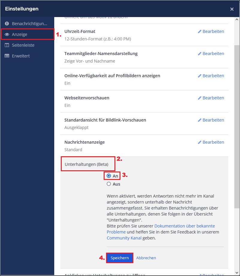 Um den Überblick in einem Kanal nicht zu verlieren, gibt es nun das neue Feature "Unterhaltungen" (engl.: Collapsed Reply Threads).