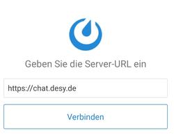 Once the app has been opened, enter "https://chat.desy.de" as the server URL and then select "Verbinden(Connect)". (Figure 1)