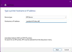 Der Druck aus dem Gästenetz erfolgt über das IPP-Protokoll und einen Treiber, der lokal installiert und konfiguriert werden muss (entsprechend der Ausstattungsoptionen des Druckers und Modell Typ).