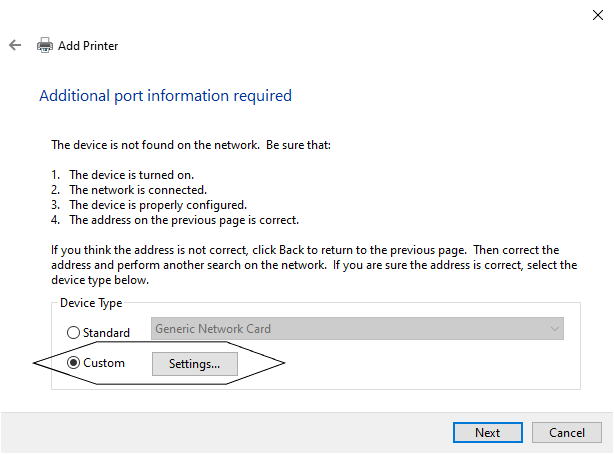 Wählen Sie die Option "Drucker unter Verwendung einer IP-Addresse oder eines Hostnamens hinzufügen" und klicken Sie auf "Weiter".