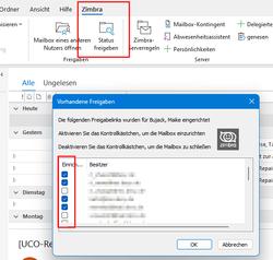 - Klicken Sie im Tab "Zimbra" auf "Status freigeben"